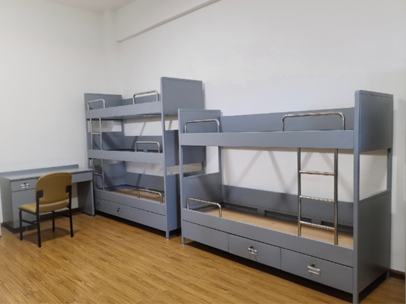 Multi-Tier Storage Bunk Beds: Gray steel frames + marine-grade moisture-proof plywood (resistant to Indonesia’s tropical humidity). Integrated lockable drawers store personal items, tools, or PPE (personal protective equipment); reinforced guardrails + anti-slip ladders adapt to vessel/yard vibrations.