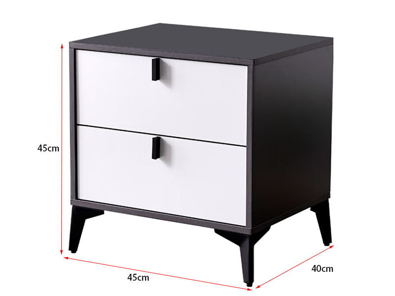 Tailored for modern bedrooms, this two - drawer nightstand showcases a black - and - white color scheme, geometric silhouette (conical legs + rectangular drawers), and metal accents. It merges sleek design with storage functionality, ideal for minimalist interiors.